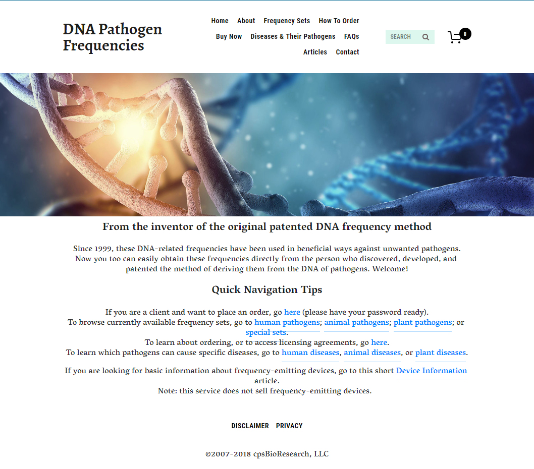 Her website has received a much-needed facelift, making it smartphone friendly and SSL secured. This is a highly recommended source for effective frequencies when you know which pathogens you are up against. In order to order her frequencies, make sure you read the "How to Order" page first, in order to avoid any confusion.